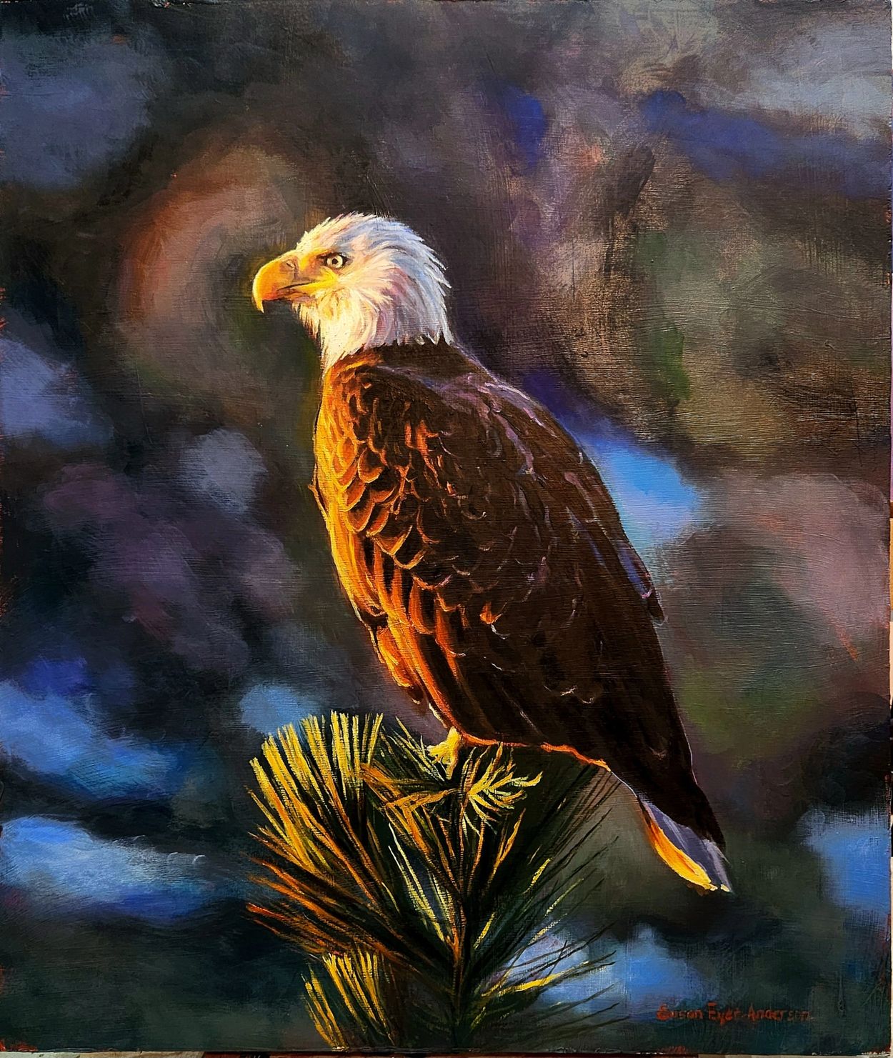 "The Good Father" 10" x 8" oil on linen. This is Shadow, one of the beloved Bald Eagles of Big Bear Lake, Ca. He would help incubate the eggs in the nest, even wen they were "duds".